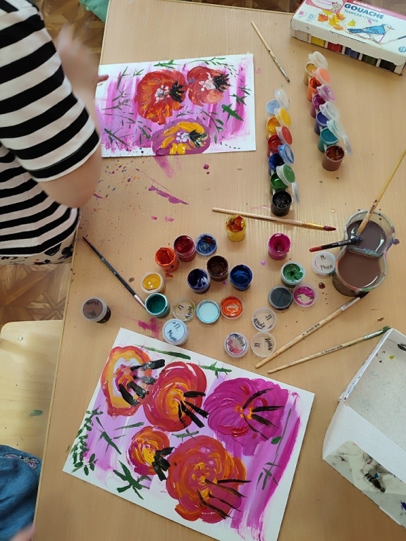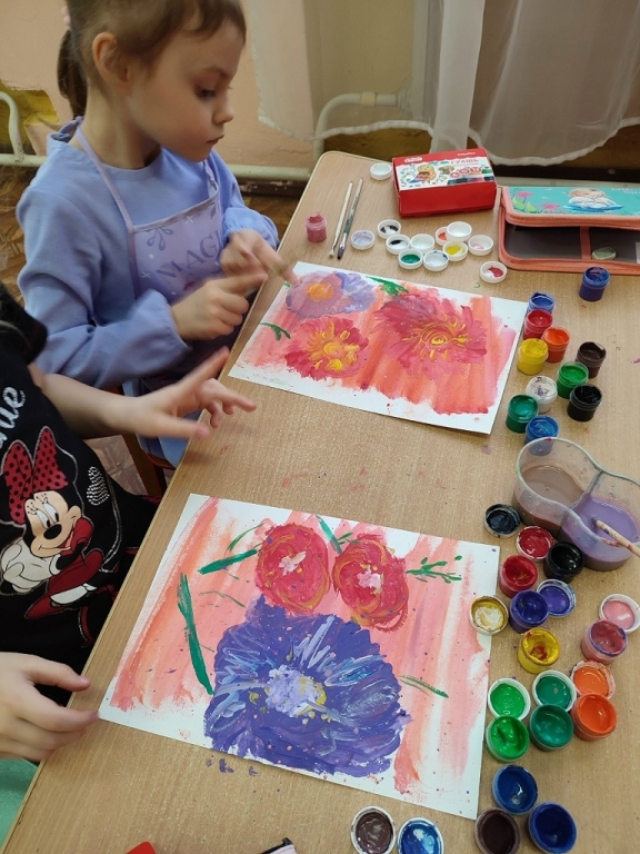 | Весенние цветы у ребят изо-студии "Мы волшебники". |